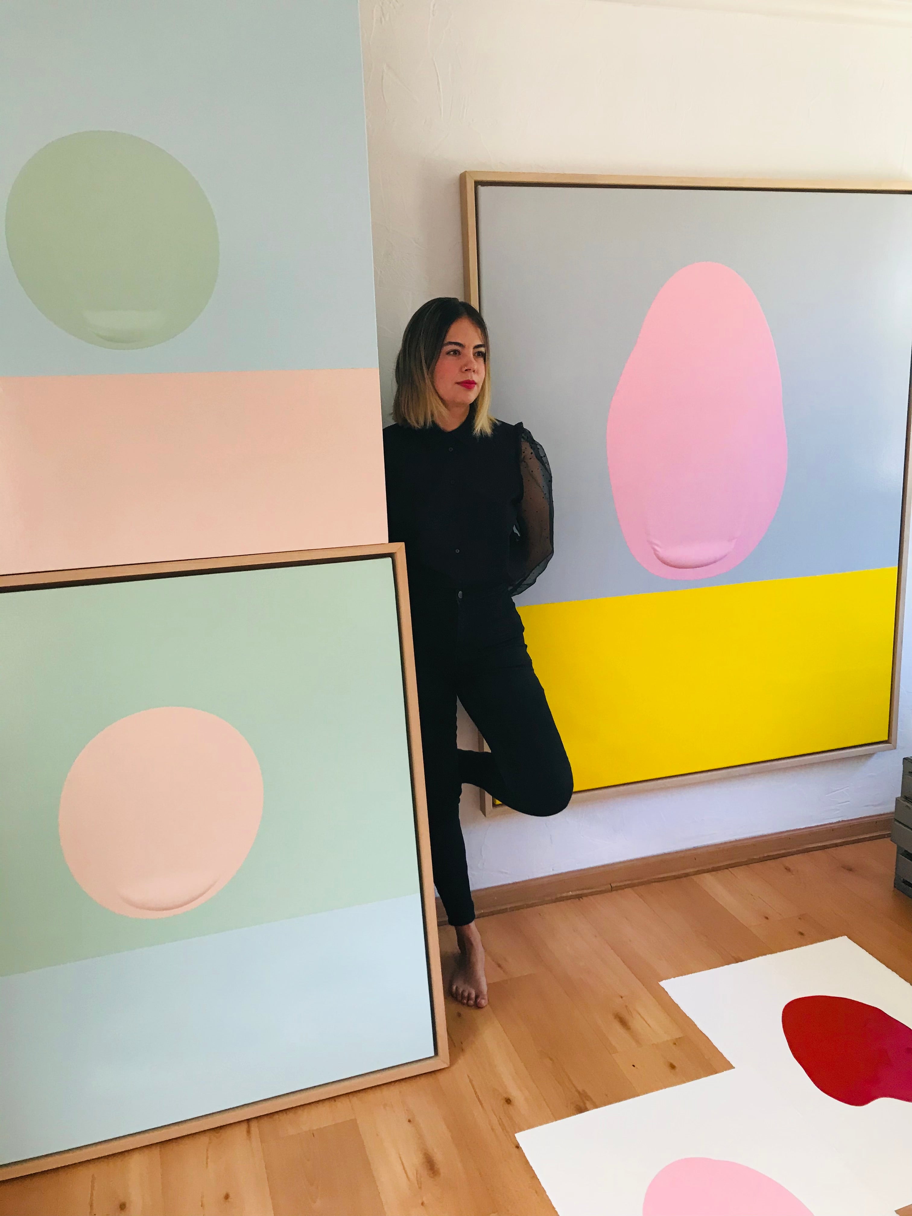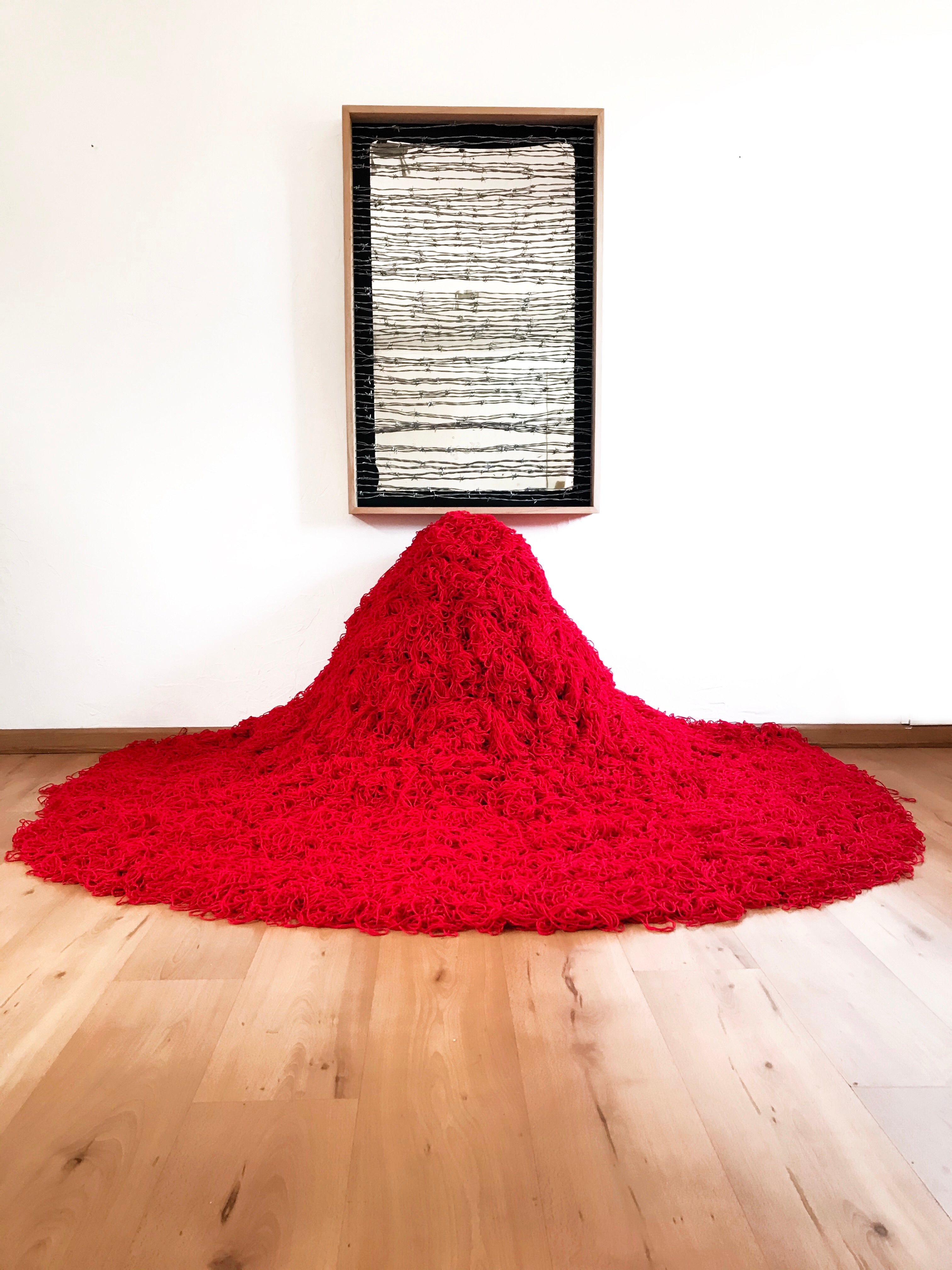 Maureen Corvalán is a visual artist, Double Bass player and Chilean psychologist. Her work focuses on the limits of representation in the dimensions of the abstract and the status of the object. It is her dialogues with the internal and the external, between the intimate and the private, the familiar and the everyday that allow for an research that explores various supports and materials such as: paint, synthetic enamel, threads, needles, nails, buttons, textiles, mirrors, canvas, glass, wood, paper. In this sense, the material is presented in a particular way, emphasizing narratives based on the records of the footprint, the search for three-dimensionality, color and shape.